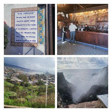 VISITED THE SMALL TOWN OF ENSENADA. WENT TO A BAR WHERE MARGERITA WAS INVENTED IN 1948. ALSO SAW A BLOWHOLE, WHERE WATER CAN SHOOT UP, SOMETIMES TO A HEIGHT OF 100 FEET.
