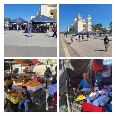 DOCKED IN ACAJULTA IN EL SALVADOR. VISITED THE CITY OF SAN SALVADOR . NOT A VERY DEVELOPED CITY. MOSTLY OURDOOR MARKETS. TOP LEFT PICTURE SHOWS AN OUTDOOR TRVELING CLINIC.
